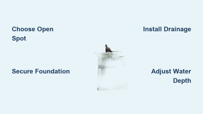 Most bird bath failures stem from inadequate foundations, leading to tipping, sinking, or cracking within months of installation. For ground-level installations, dig a hole 6-8 inches deep and twice the width of your bath’s base. Remove all grass, roots, and debris, then compact the soil at the bottom using the back of your shovel. This preparation prevents shifting that causes uneven water distribution.